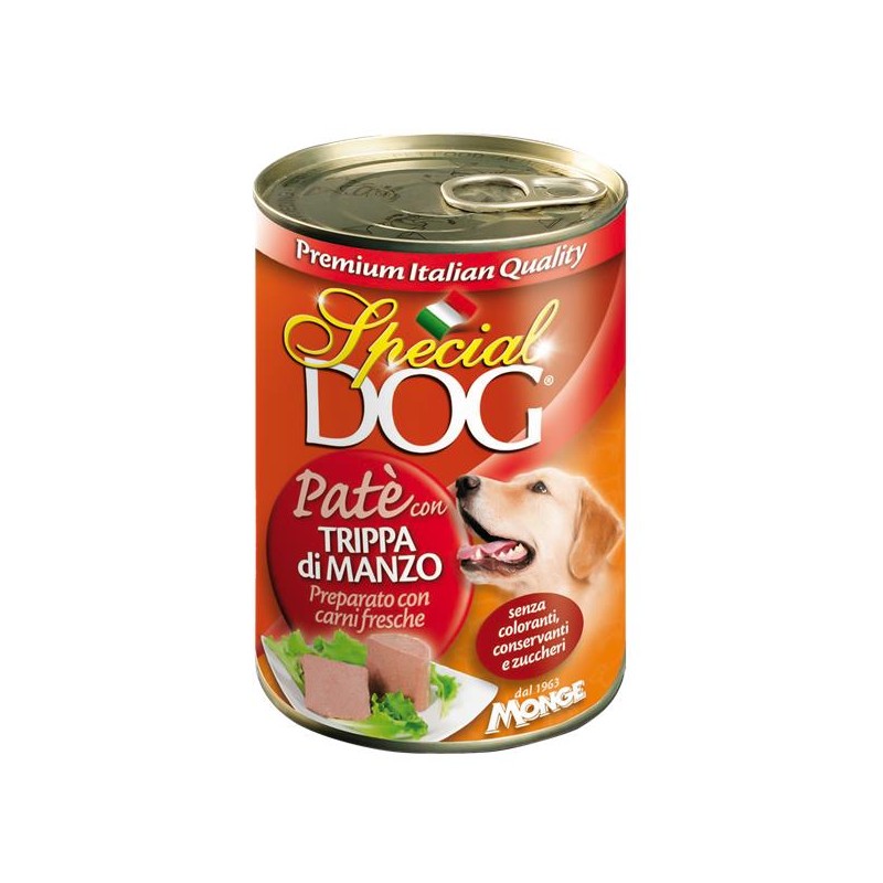 Scadenza: 4 anniDimensioni: Ø 75*H110mmPeso: 400gUnità : 1Imballaggio unità: barattoloQ.tà imballaggio esterno: 24Usi: CaniImballaggio esterno: barattoli/scatolaDescrizione: Premium paté prepared withlamb tripe, suitable for daily feeding of dogs of all breeds, without colorings, preservatives and added sugar. meat and derivatives 80% (of which 26% lamb...